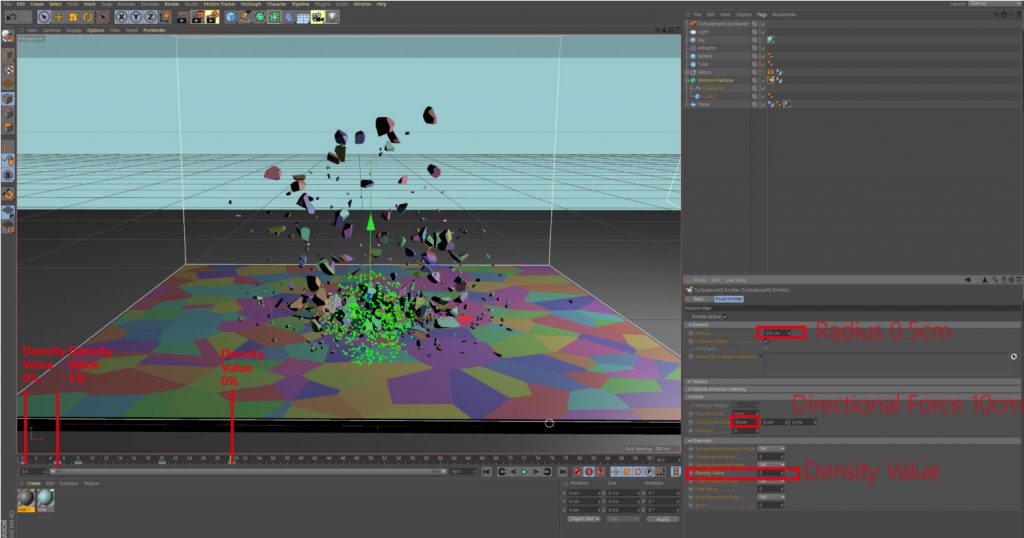我們將TurbulenceFD Emitter Tag複製出來給Debris使用,並將Radius設定為1cm。