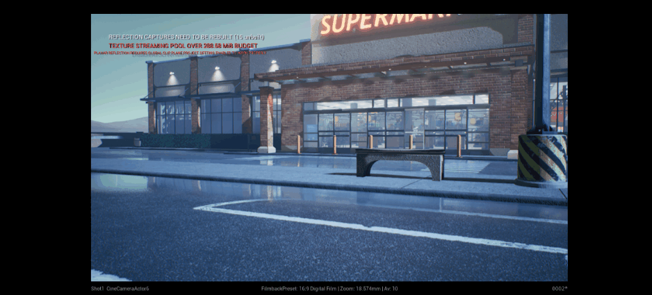這邊我們可以建立一個普通的Camera來看看,從Gizmo的圖像上就差異很大了,而普通的Camera拍出來的畫面也是無法達到CineCamera的電影效果,而普通的Camera則比較適合當作遊戲上跟隨的相機,CineCamera則是適合電影質感的影片或是遊戲上高質感的過場動畫。