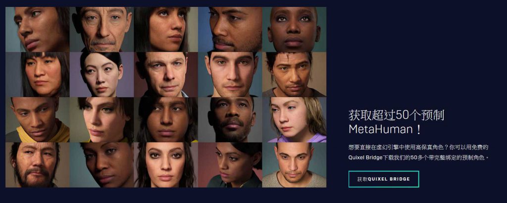 捏出滿意的模型後,接下來該怎麼做呢? 在操作的網頁上,暫時看不到該如何下一步。但在原本MetaHuman的官網下方,就有說明,可以從 Quixel Bridge 進行匯出下載。